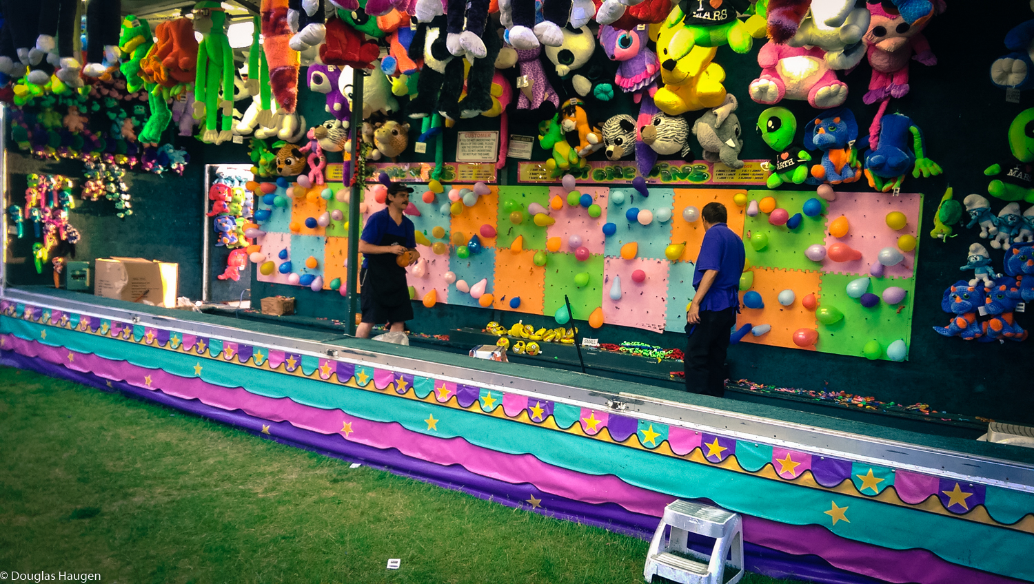 Occasionally, I’d see someone walk past a game, slow down to size it up, but then continue on in no particular direction. The carny would barely glance up at him or her as it it was a foregone conclusion that the person wouldn’t be interested. Their shoulders slumped as if they hadn’t only given up on their own games, they’d given up on life.
