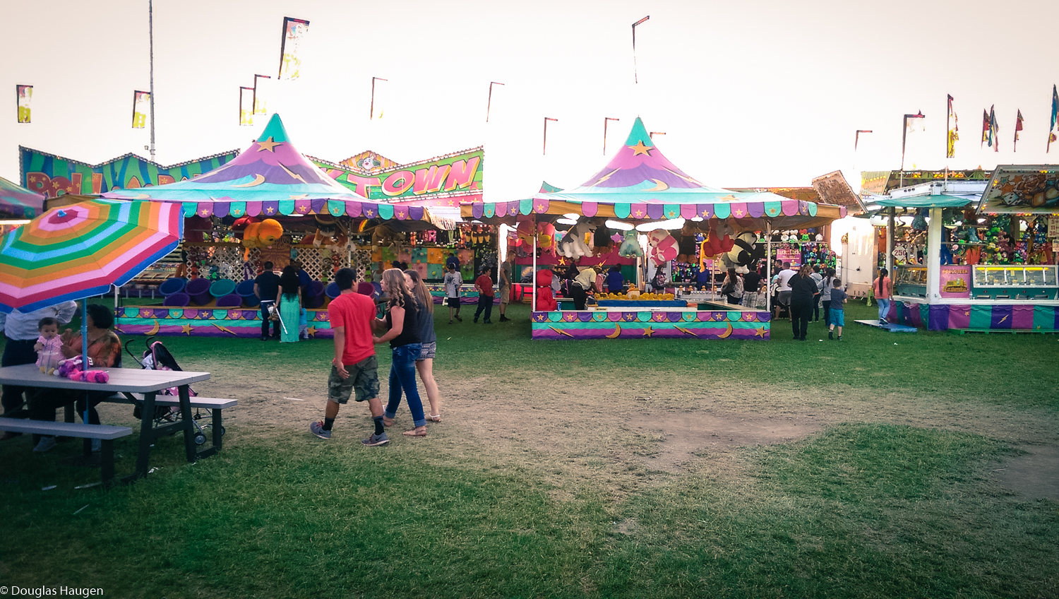 Like a good dive bar, I hoped walking around Moses Lake during SpringFest would offer up an eyeful of texture and color in its decrepitude: a dive town. I wanted to observe the quaintness of a weekend celebration that brings a little town together. I wanted to see the smiles on children’s faces as they shoved cotton candy into their sticky mouths. I wanted to see young men try to win prizes for young women while demonstrating some degree of athleticism or skill playing carnival games. I wanted to see lovers, young and old, holding hands on a Ferris Wheel, sneaking kisses at the apex of each revolution. I wanted to smile. I wanted to see flashing lights, hear the bings and pops and chimes and thuds, and inhale the bewildering scent of meat and sugar that you only smell at a carnival.